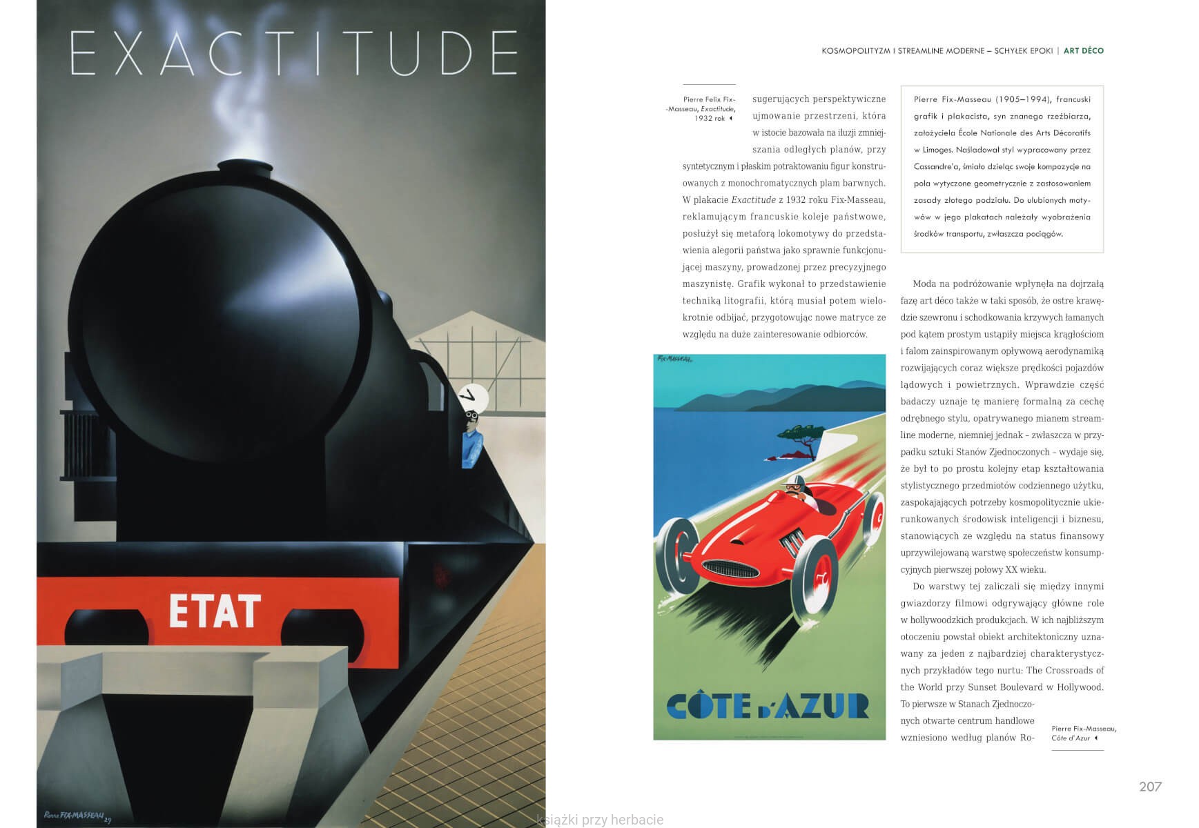 Nowy język plastyczny, jakim było art déco, powstał na skutek zmęczenia ograniczeniami i restrykcjami okresu wojennego. Artyści odczuwali potrzebę tworzenia opartego na dekoracyjności oraz bogactwie wzorów i materiałów. Ich twórczość łączyła pewne cechy tradycji z innowacjami inżynieryjnymi ery maszyn. Prezentowany album to bogato ilustrowana opowieść o świecie lat dwudziestych, trzydziestych i czterdziestych XX wieku. Obecny wówczas styl art déco rozwinął się przede wszystkim w obrębie sztuk wizualnych: w architekturze, rzeźbie, malarstwie, grafice użytkowej i rzemiośle artystycznym.