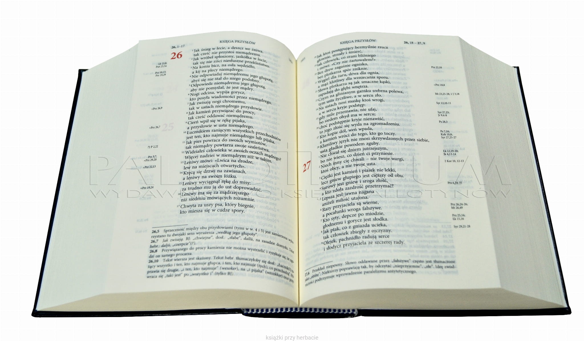 BIBLIA JEROZOLIMSKA Biblia Jerozolimska to wydanie Pisma Świętego w języku francuskim, dzieło zespołu czołowych egzegetów katolickich Francji, kierowanego przez dominikańską szkołę biblijną z Jerozolimy (École Biblique et Archeologique Française de Jérusalem). Inicjatywę i realizację pierwszego wydania, które ukazało się w fascykułach w latach 1948-54 należy przypisać Th.G. Chifflot OP. Wielkie uznanie zyskały zwłaszcza przypisy odwołujące się do hipotezy dokumentów Pięcioksięgu i metody historyczno - krytycznej. W roku 1973 ukazało się nowe wydanie gruntownie przejrzane i rozszerzone, szczególnie o rewizję i uzupełnienie przypisów. Najliczniejsze są wydania BJ w wielu językach z roku 1981. Prace nad BJ trwają ciągle. W roku 2001 ukazało się nowe wydanie BJ, uwzględniające znaczące zmiany, zwłaszcza w podejściu do Biblii hebrajskiej. Obecnie trwają prace nad projektem BJ, które przekracza ramy poprzednich wydań, między innymi poprzez szerokie uwzględnienie wczesnej egzegezy żydowskiej oraz patrystycznej. Wartość i znaczenie Biblii Jerozolimskiej, a także jej niewątpliwy, międzynarodowy sukces stanowią przypisy, które łączą specjalistyczny aparat naukowy z przystępnością objaśnień dla szerokiego kręgu czytelników. Charakterystyczna zwięzłość przypisów pozwoliła zachować jednotomowy format wydania Biblii, co ma ogromne znaczenie praktyczne. Niezwykle pomocne w studium Biblii okazują się także marginalia, jak też wprowadzenia, tablice poglądowe, mapy, czy indeks najważniejszych nazw i pojęć biblijnych. Mamy nadzieję, że polskie wydanie sprosta Państwa oczekiwaniom.