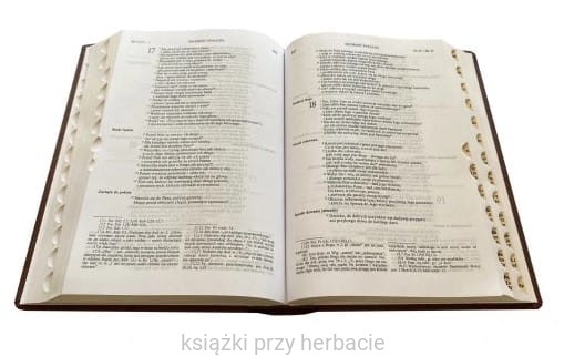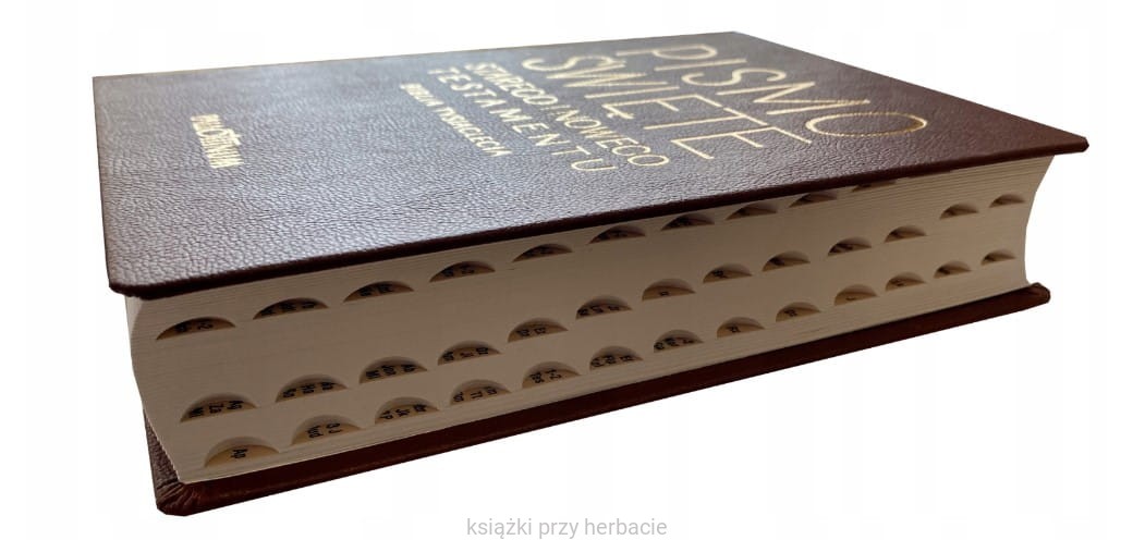 Bardzo praktyczne wydanie Biblii, z paginatorami, czyli nacięciami, dzięki którym można bardzo szybko znaleźć szukany tekst.
