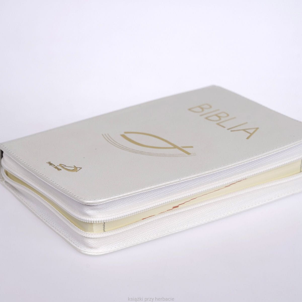 Biblia z "rybką". Stary i Nowy Testament (biały futerał z suwakiem)