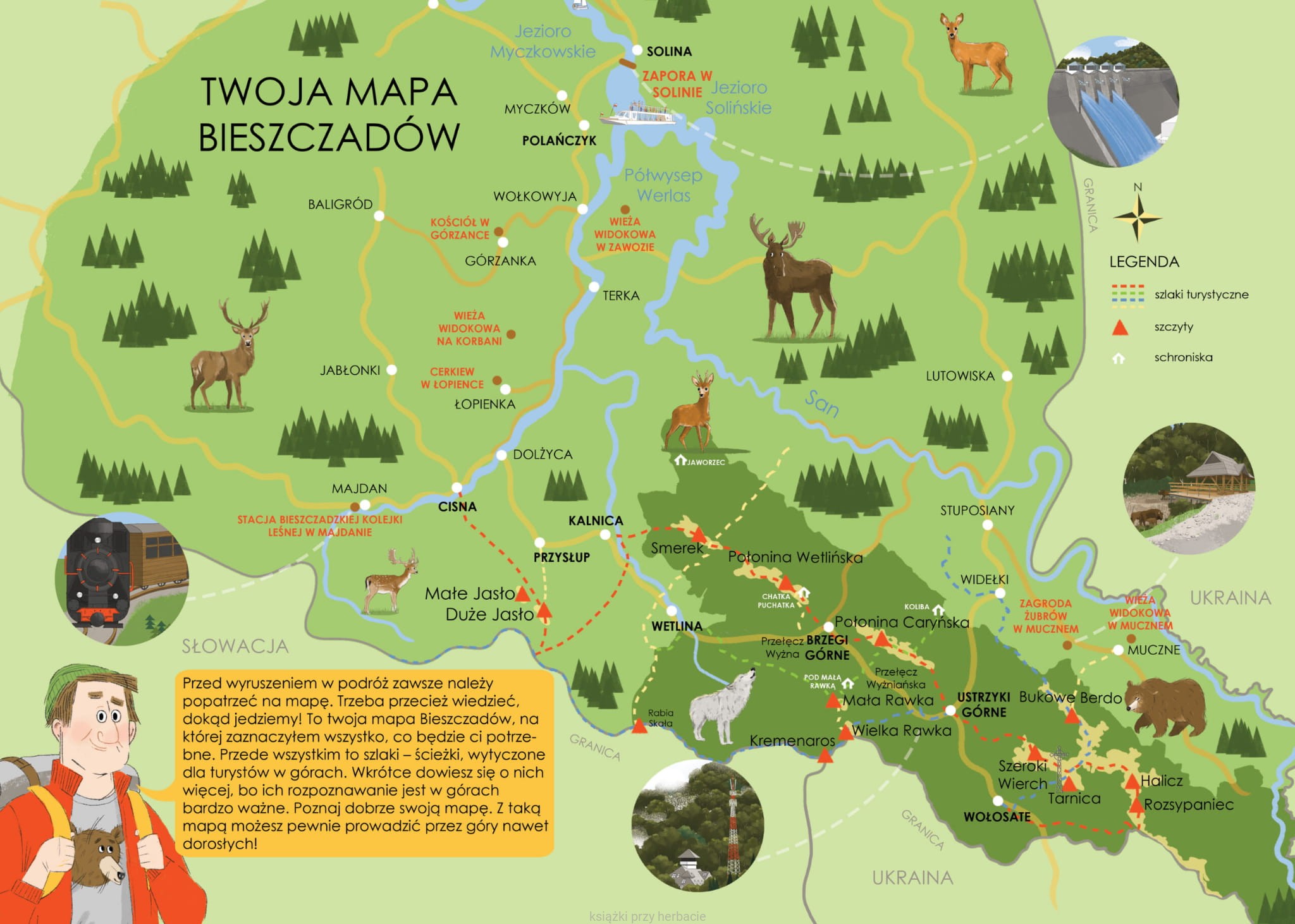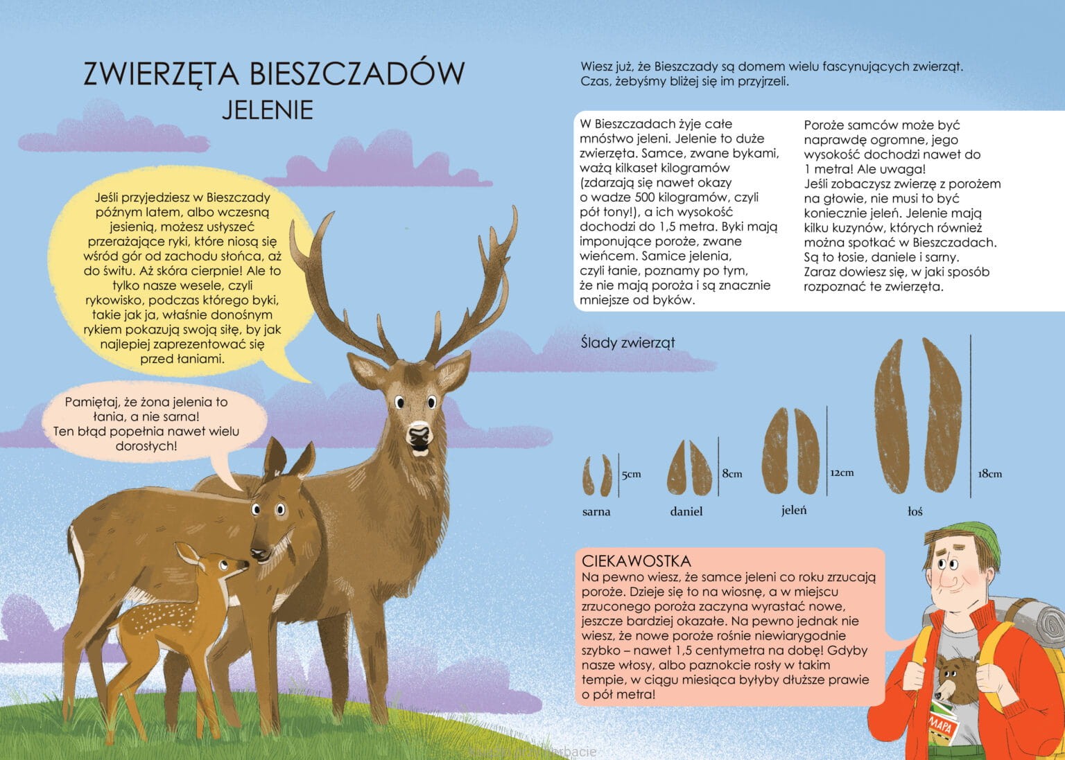 Książka „Bieszczady. Przewodnik dla małych i dużych odkrywców” Adriana Markowskiego, autora przewodników po Bieszczadach i książek dla dzieci, jak sam tytuł wskazuje – skierowana jest zarówno dla małych, jak i większych poszukiwaczy przygód. Wspólnie odkrywajcie piękno bieszczadzkich lasów z przewodnikiem Adriana Markowskiego, w którym znajdziecie także wiele ciekawostek i przydatnych informacji. „Bieszczady. Przewodnik dla małych i dużych odkrywców” Adriana Markowskiego, oprócz atrakcyjnej treści, zawiera także ilustracje autorstwa Agaty Dobkowskiej, przybliżające małym czytelnikom piękno Bieszczad.