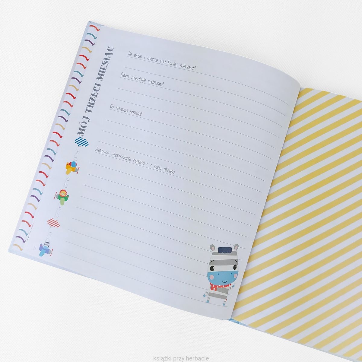 Przechowane w nim zdjęcia oraz zapisane informacje i ulotne wspomnienia sprawią, że rodzice i bohater książki będą mogli wracać do rozczulających momentów z najważniejszych miesięcy w życiu - od przyjścia dziecka na świat do pierwszych urodzin.