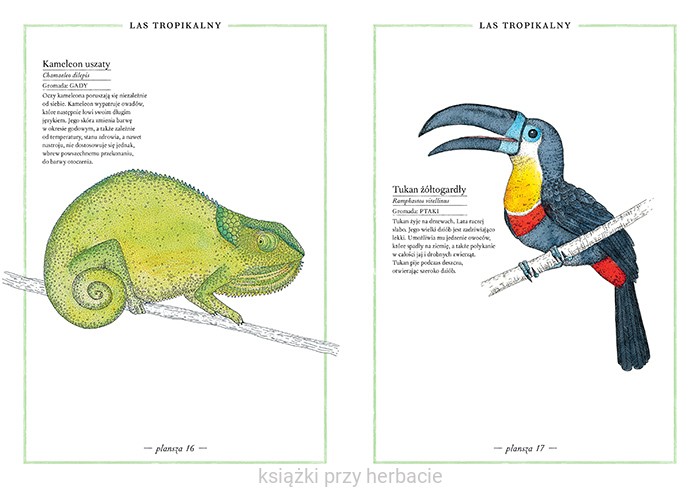 Każda rycina opatrzona jest polską i łacińską nazwą oraz kilkoma ciekawostkami na temat zwierzęcia.