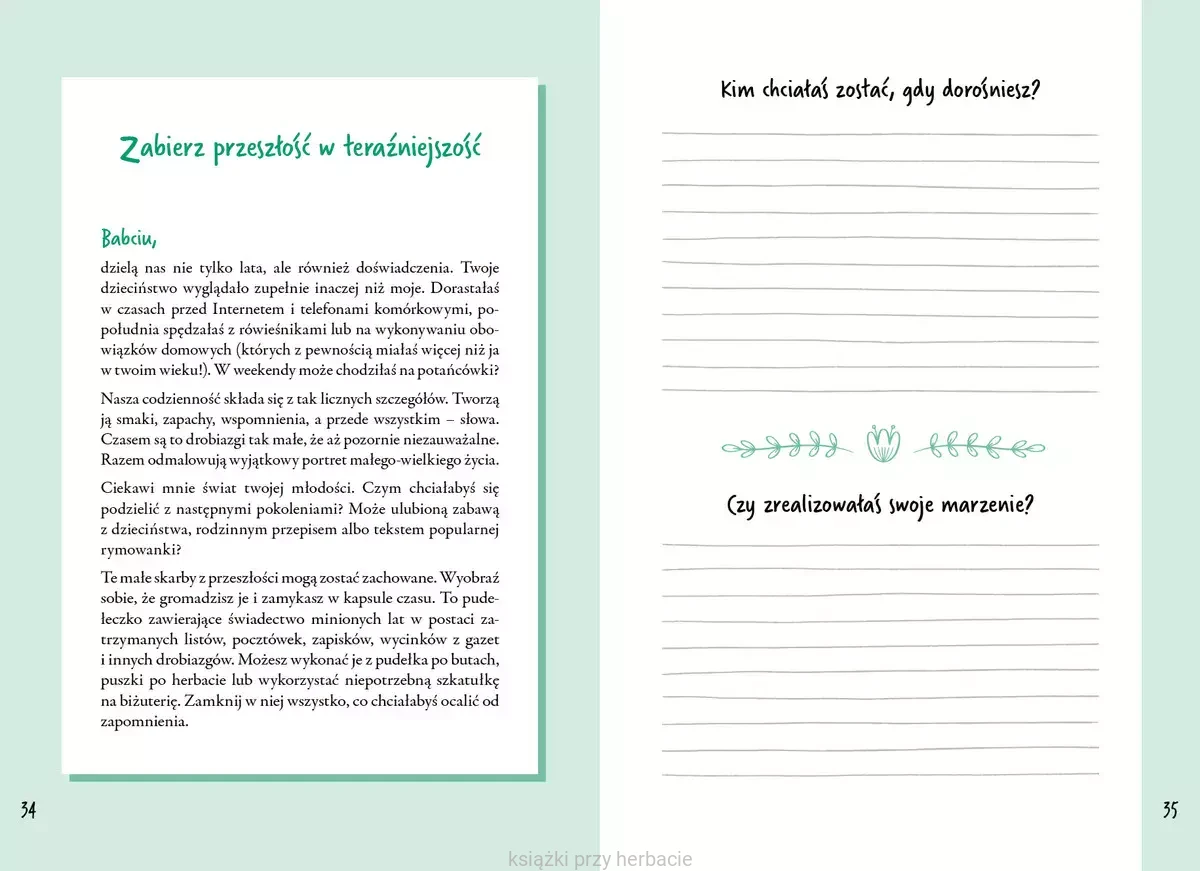 Książka zawiera również pobudzające kreatywność teksty i ćwiczenia, które staną się inspiracją dla niezwykłych kobiet, jakimi są nasze babcie!