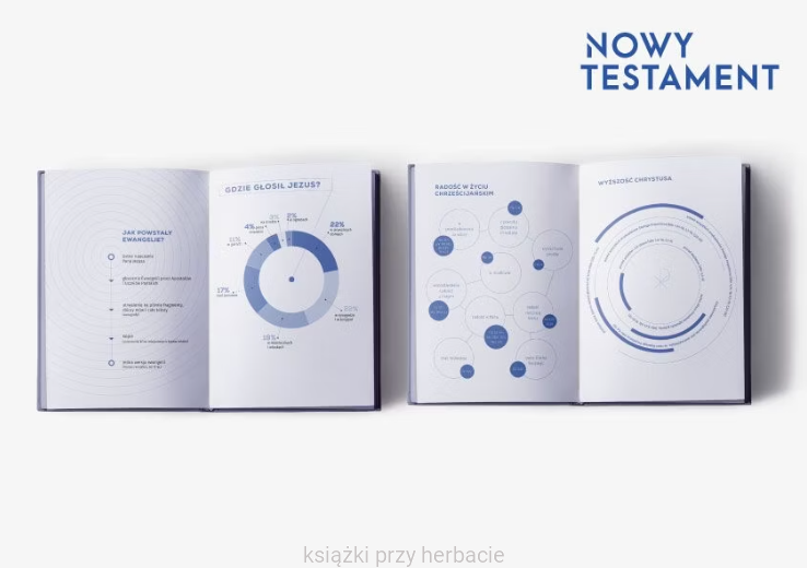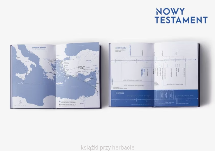 Jednotomowe wydanie Nowego Testamentu w najlepszym, według biblistów, przekładzie z języków oryginalnych, wzbogacone autorskimi infografikami. Dodatkową zaletą tego wydania są wstępy napisane przez uznanych biblistów. Biblia wykończona została twardą oprawą, w eleganckim, granatowym kolorze ze złotymi tłoczeniami.