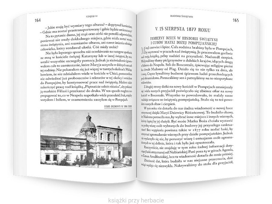 Niniejsza książka jest wspaniałym dokumentem powstawania kościoła w Pompejach, niepozbawionym dramatyzmu, ale i ciepłego humoru. W toku tej opowieści widzimy wspaniałe interwencje Bożej opatrzności, która prowadziła Bartola Longa i Mariannę de Fusco. Poznajemy także wielu przyszłych świętych i błogosławionych, związanych z tym wybranym przez Maryję miejscem. Pragniemy, aby „Historia…” tak przemówiła do serc, by każdy mógł powiedzieć: „Moim marzeniem jest pojechać do Włoch, odwiedzić Pompeje i Królową Różańca!”. Wierzymy, że każdy, kto nie będzie mógł tego uczynić, poprzez lekturę niniejszej książki przeniesie się sercem i duszą do pompejańskiego sanktuarium.