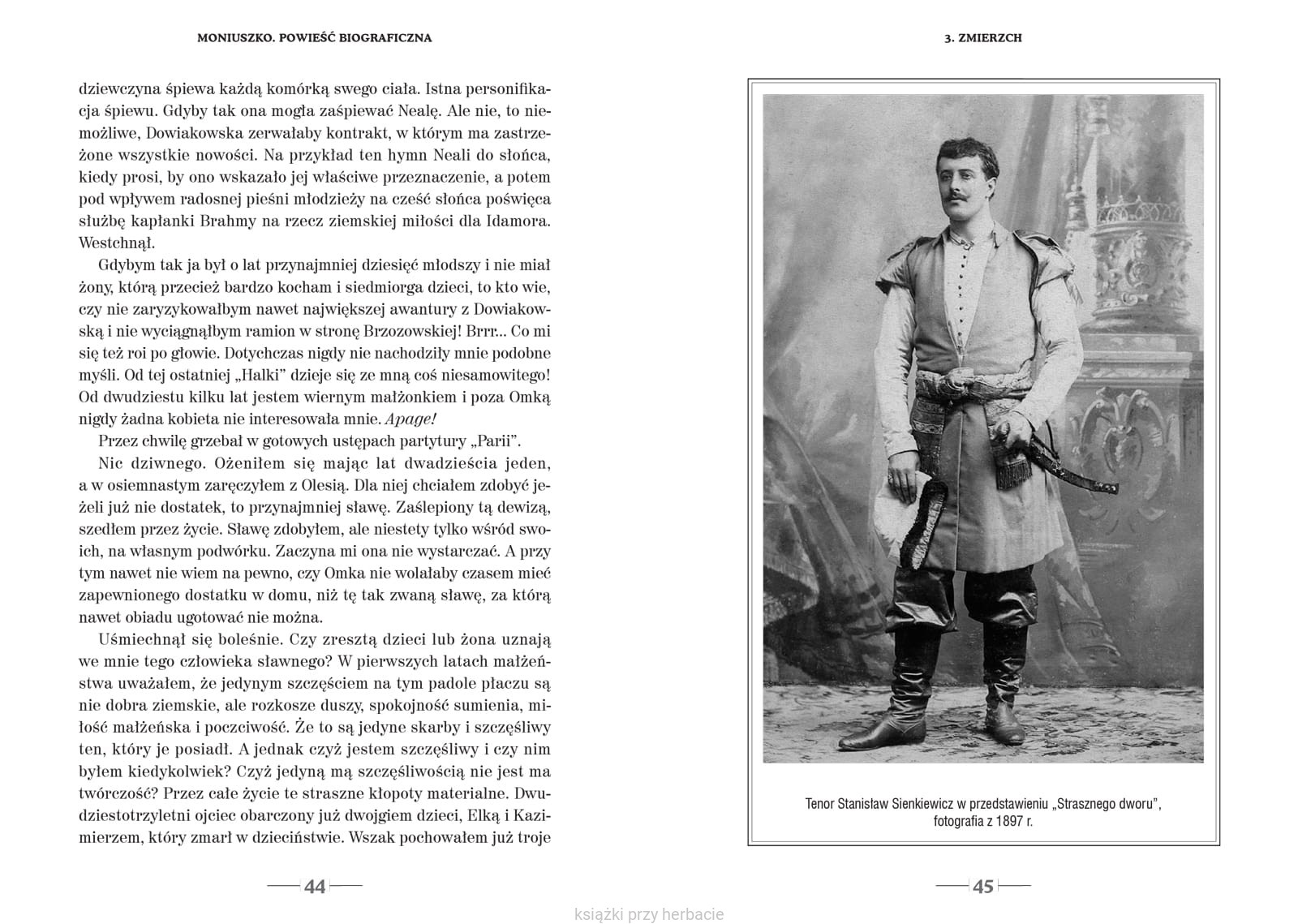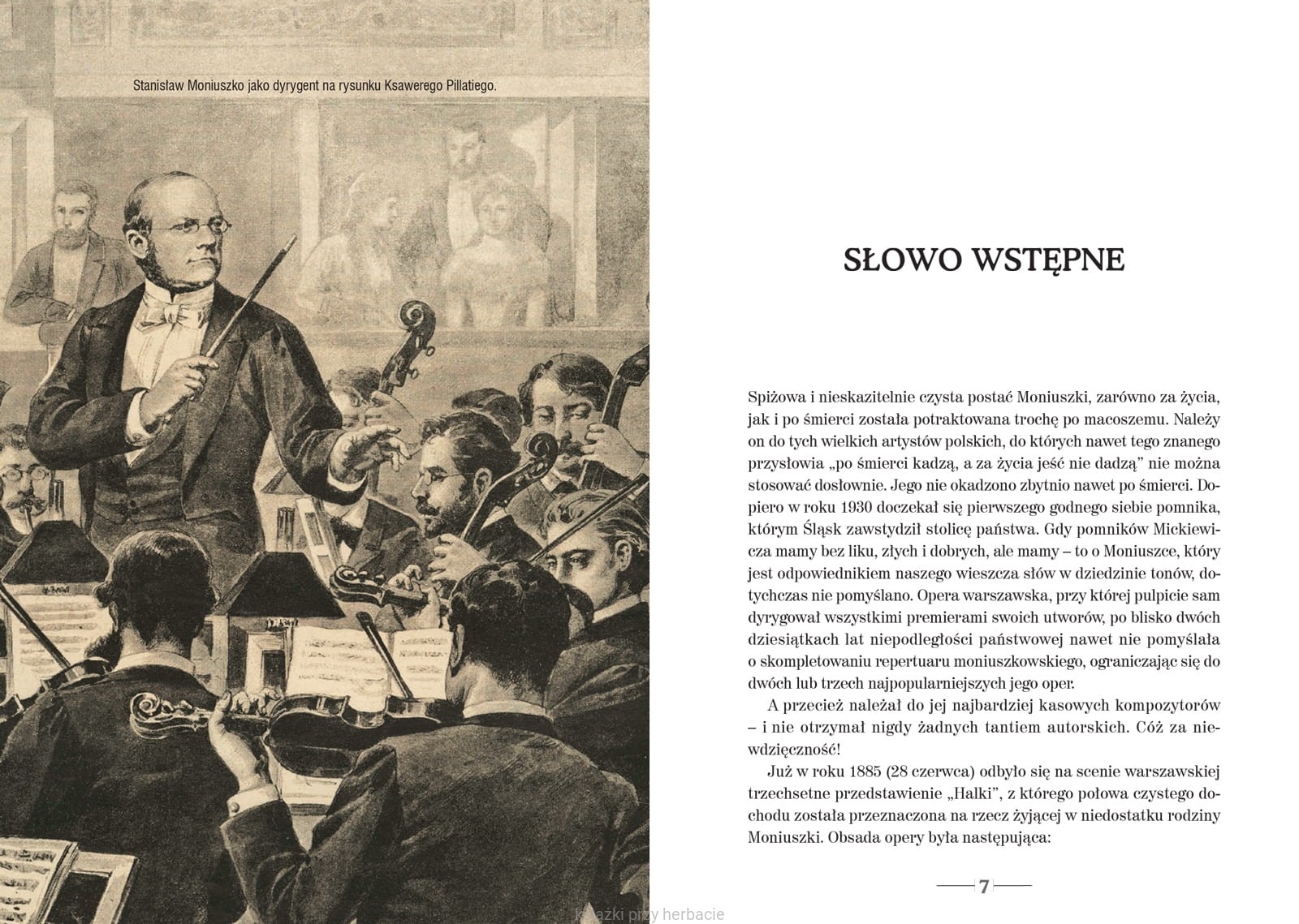 Niezapomnianą sławę i miejsce w panteonie polskiej sztuki przyniosły mu przede wszystkim opery „Halka” i „Straszny dwór”. Jak entuzjastycznie były przyjmowane te utwory, najlepiej świadczy fakt, że Paulina Rivoli, odtwórczyni roli Halki, musiała po premierze 17 (!) razy bisować. Wówczas jednak sława i sukcesy artystyczne niekoniecznie przekładały się na materialne. Stanisław Moniuszko w zasadzie całe życie zmagał się z niedostatkiem. Jak to życie wyglądało i od strony sceny, i od kulis, opowiada barwna powieść biograficzna znakomitego muzykologa, literata oraz publicysty Władysława Fabry’ego.