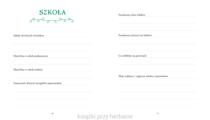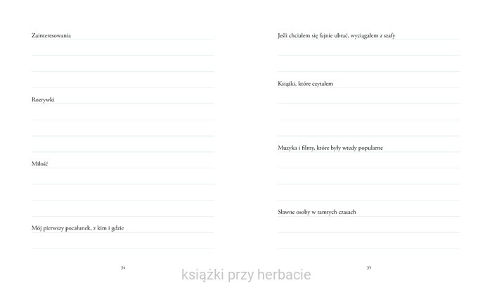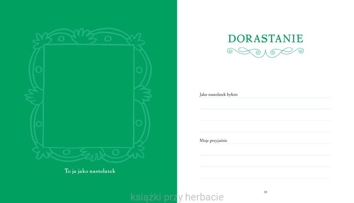 Jesteś dziadkiem? Dzięki tej książce będziesz mógł przekazać wnukom opowieść o swoim życiu. Być może już teraz lubią, kiedy opowiadasz im o swoim dzieciństwie, o „dawnych czasach”. Gdy dorosną, książka z twoimi wspomnieniami będzie dla nich bezcennym skarbem. Nie tylko pozwoli im dowiedzieć się, kim byłeś, jak żyłeś, jak myślałeś, ale także pomoże im poznać własne korzenie i zobaczyć swoje życie w szerszym kontekście. Od czego zacząć? Jak opowiada się o życiu? Ta książka pomoże ci uporządkować wspomnienia. Znajdziesz tu także miejsce na fotografie. Możesz po kolei odpowiadać na pytania lub wpisywać tylko to, co w danym momencie przychodzi ci do głowy. Jeśli któryś temat cię nie dotyczy, rozwiń w tym miejscu inny wątek. Nie musisz traktować dosłownie każdego hasła – wystarczy, jeśli stanie się inspiracją do zapisania tego, co pamiętasz, co było ważne akurat dla ciebie. Kto wie, może zechcesz kontynuować zapiski w osobnym zeszycie? |