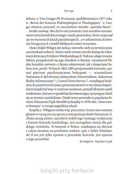 'Książkę o. Wiltgena trzeba więc przeczytać, bo jest ona ważnym głosem w toczącym się sporze o interpretację dzieła Vaticanum II. Obala szereg mitów, narosłych wokół tego ważnego wydarzenia z historii Kościoła katolickiego. Jest szczególnie ważna dla polskiego czytelnika. To bowiem w Polsce, znajdującej się obecnie z całym światem na przełomie wieków, spór o Sobór Watykański II nie jest tylko sporem o przeszłość Kościoła. Jest sporem o Jego przyszłość.'