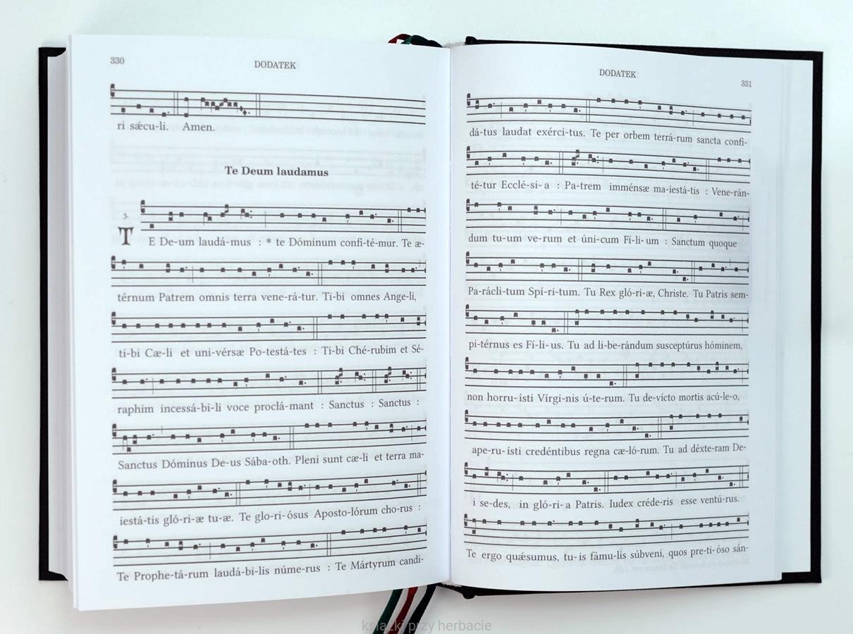 Nowe wydanie Modlitewnika Te Deum Laudamus zawiera ponad 40 stron więcej niż wydanie pierwotne m.in. dodano nowe melodie kyriale, credo, litanię o pokorę i poprawiono te błędy, które wkradły się do wcześniejszego wydania. Modlitewnik zawiera 3 tasiemki.